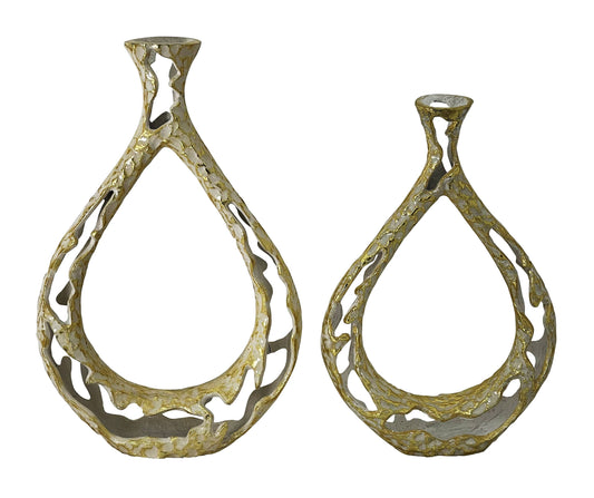 39cm / 34cm Off White & Gold Vase Bottle Shaped Embossed Metallic Finish Luxury
