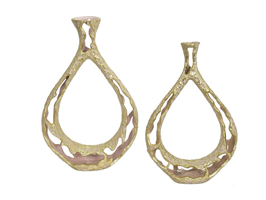 39cm / 34cm Pink & Gold Vase Embossed Metallic Finish Golden Home Decor Luxury