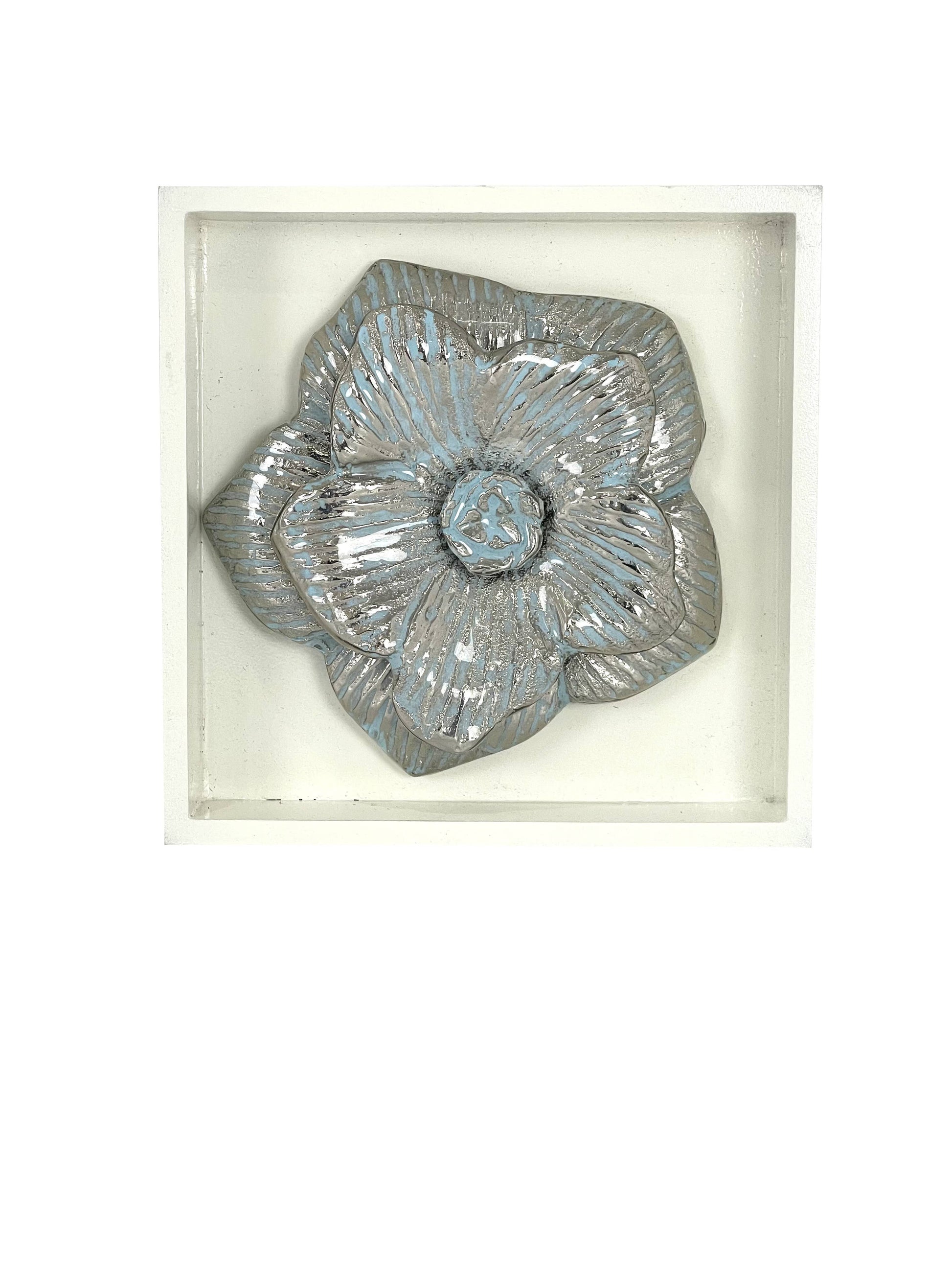15cm Silver & Pale Blue Shadow Box Wall Mounted Silver Decor Framed Flower