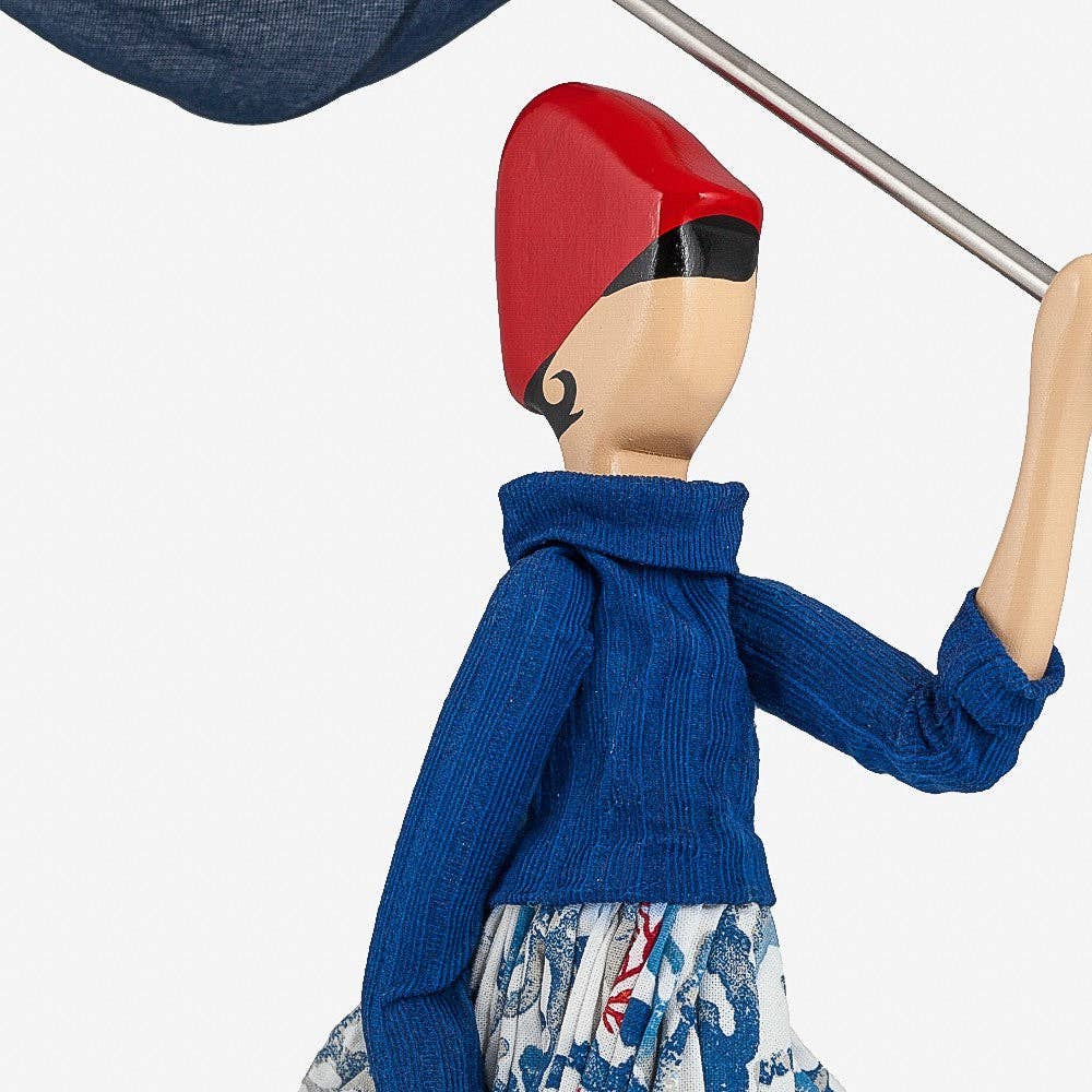 85cm Tall Handmade Blue Windswept Lady Figurine Lamp Umbrella Reading Bedside Living Room Decor Statue Lamp Novelty Lighting Gift for Her